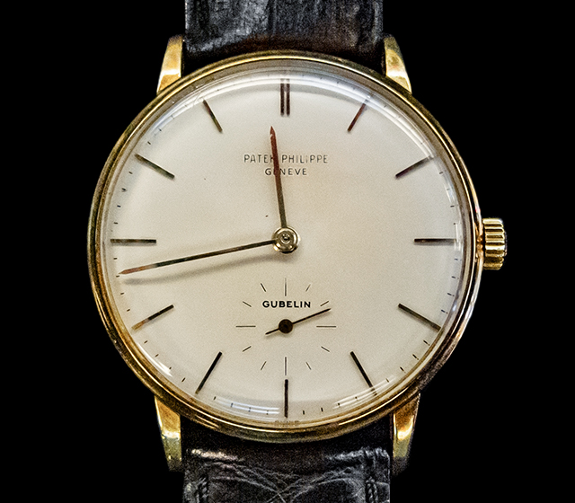 | 介紹: | 具時.分.小秒針顯示、抗磁機芯、機芯烙有二枚日內瓦印記、K金立體刻度時標及指針、約1960年。(此錶為古柏林向百達翡麗訂製、六點鐘方向印有GUBELIN字樣) |